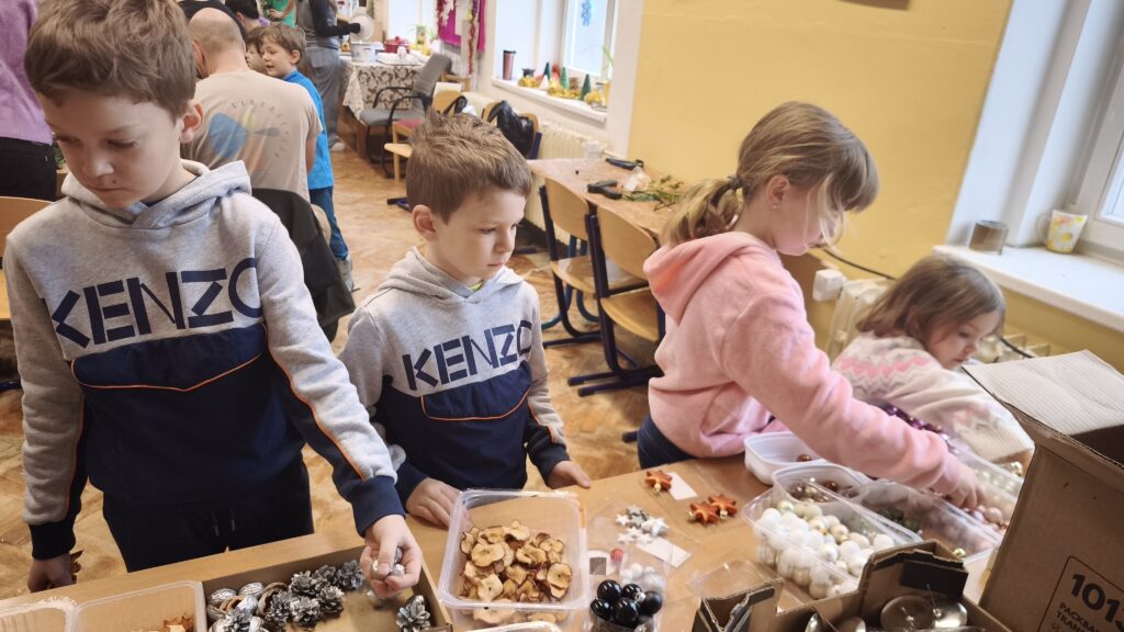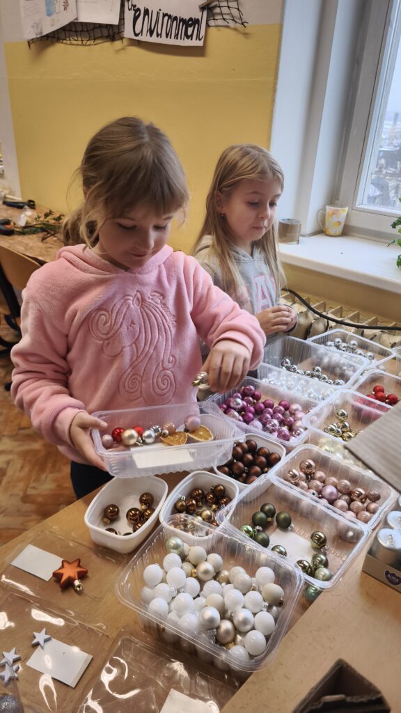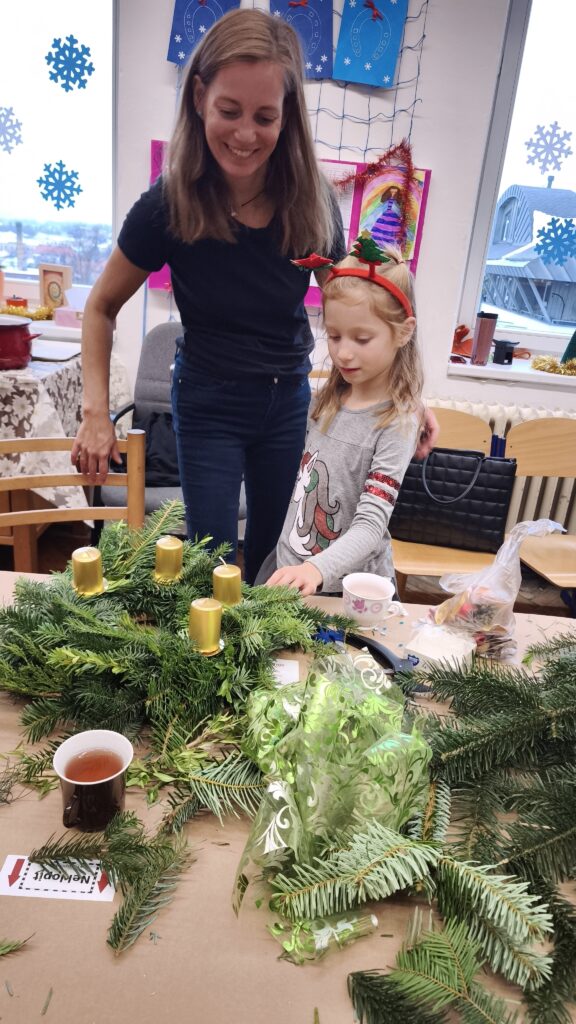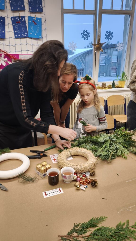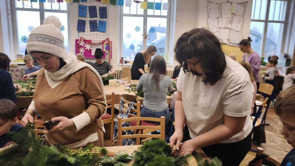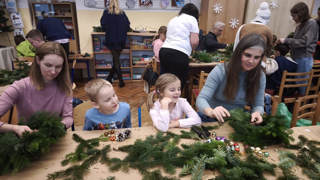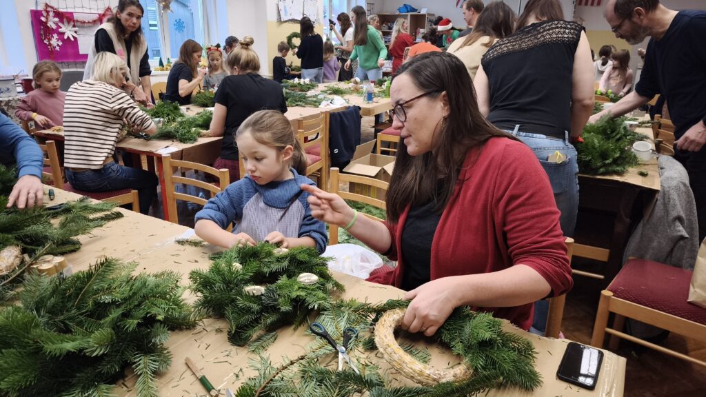 V průběhu sobotního dopoledne 29. listopadu si mohli naši prvňáčci s rodiči, učitelky a ostatní kolegové vyrobit své originální adventní věnce.