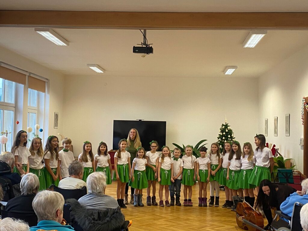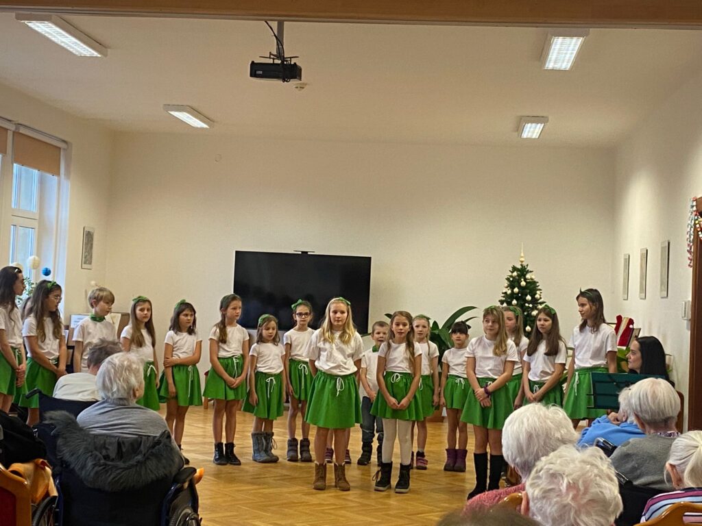 V pondělí 28.11. jsme společně s dětmi navštívily Dům důchodců ve Vratislavicích. Děti ze Sborečku pod vedením paní učitelky Soldánové a Moravcové potěšily posluchače vánočními koledami a poté rozdaly drobné dárečky a adventní věnec. Setkání bylo moc milé a dojemné.