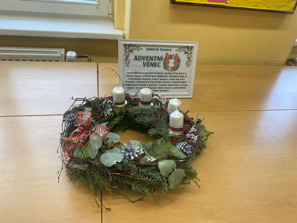 V průběhu sobotního dopoledne 30. listopadu si mohli naši prvňáčci s rodiči, učitelky a ostatní kolegové vyrobit své originální adventní věnce.
